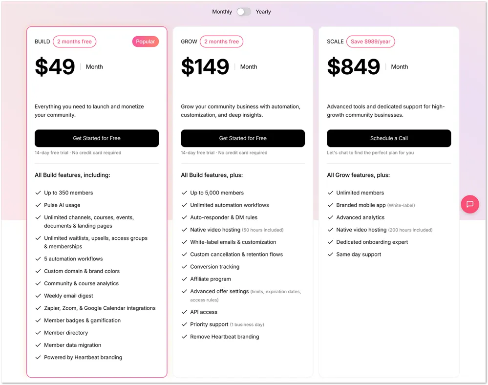 The main thing to go in with clear eyes about is pricing. The Build plan is a reasonable entry point but has limitations that growing communities will run into. If you’re serious about building a community business, the Grow plan is where the platform really opens up, and the price reflects that.
